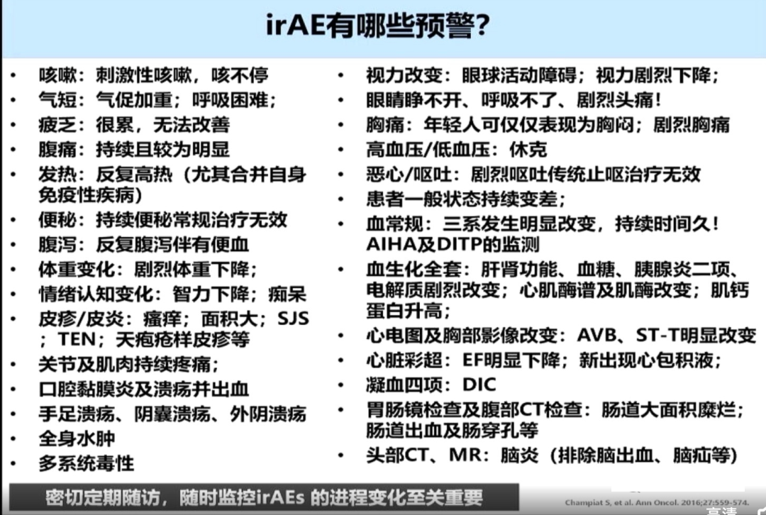 本文的目的不是为了教给患者家属如何对应免疫治疗的相关不良反应,而是提醒家属们这些不良反应可能的表现和症状,以便家属有意识地随时关注患者的状态,在出现相关症状时及时采取措施。