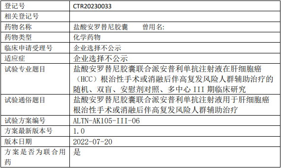 正大天晴安罗替尼临床试验,盐酸安罗替尼胶囊联合派安普利单抗注射液治疗肝细胞癌(HCC)根治性手术或消融后伴高复发风险人群辅助治疗随机、双盲、安慰剂对照、多中心的III期临床试验
